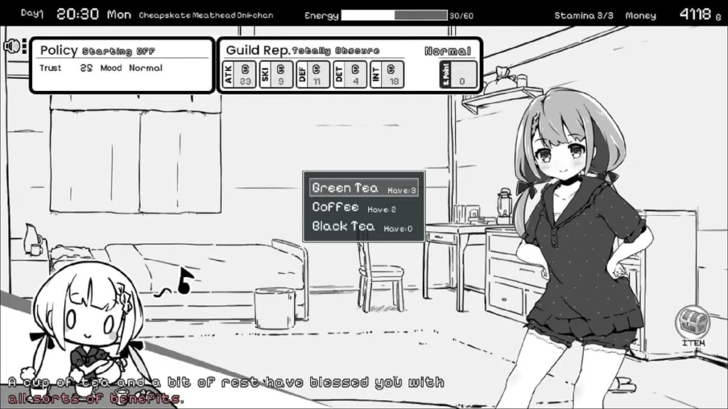 So, how to progress in Living With Sister: Monochrome Fantasy efficiently? It’s about smart prioritization. The early game is a sprint to establish a sustainable routine. Don’t worry about maxing stats immediately. Your first major milestone should be saving 5000 gold for the Feathered Bed. This purchase is a complete game-changer, effectively giving you more “time” each day.